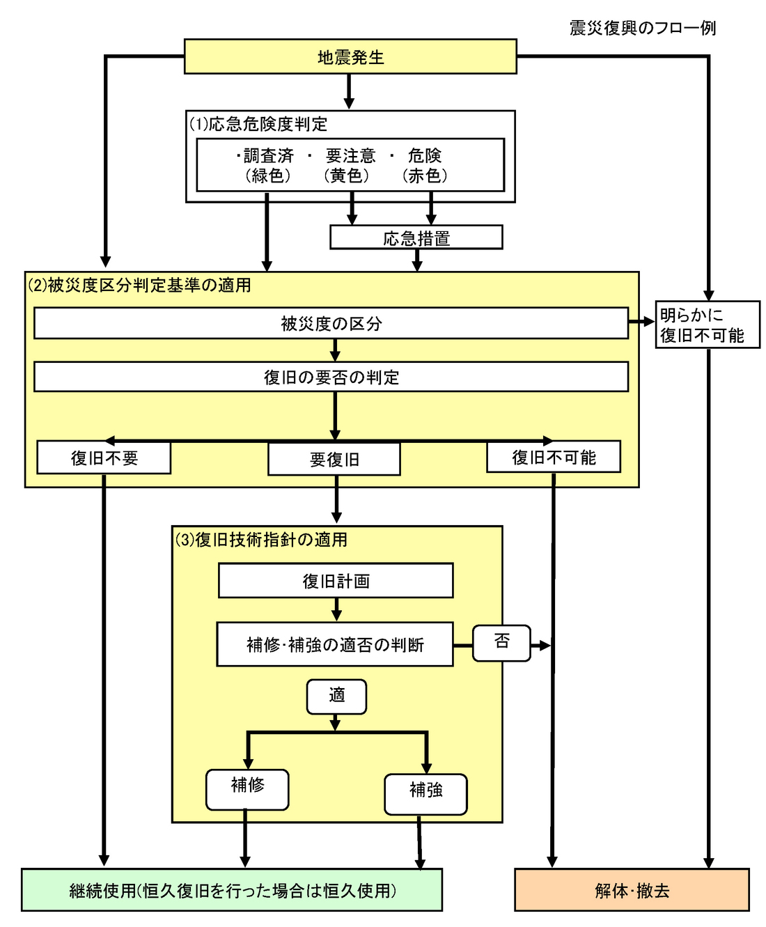 ★恒久復旧とは、復旧後の耐震性能が「建築物の耐震改修の促進に関する法律」等で必要とされている耐震性能を満足していることをいう。
