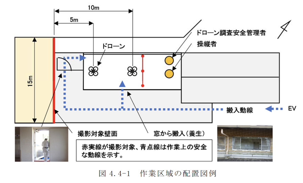 よる建築ドローン飛行管理責任者が作成する「ドローン飛行計画書」を例として図4.7-1 に示す。
